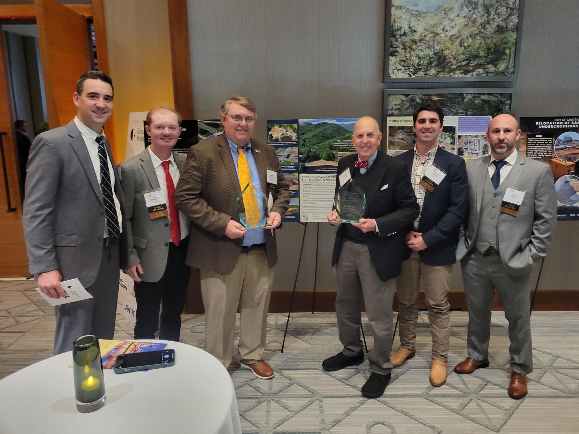 Pictured from left to right are John Weavil (S&ME), Zane Robinson (S&ME), Jason Reeves (S&ME), John Seward (Ripshin Lake Corporation), Thomas Young (S&ME), and David Mintzer (S&ME) at the ACEC-TN Engineering Excellence Awards Gala in Nashville, TN.