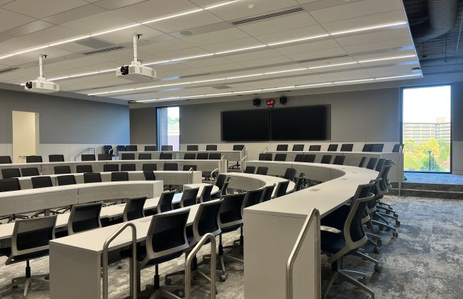 Scheduled to open for the Spring 2026 semester, Steven D. Bell Hall will significantly expand Kenan-Flagler’s academic and community spaces doubling capacity for classrooms, student life, and collaboration. The facility includes technologically advanced classrooms, a 40-seat outdoor tiered teaching space, a four-story atrium surrounded by collaboration, dining, and study areas, meeting and event spaces, dining facilities, and a variety of outdoor event terraces. Together, these spaces support innovative teaching, student engagement, and community interaction within a modern, integrated campus environment.