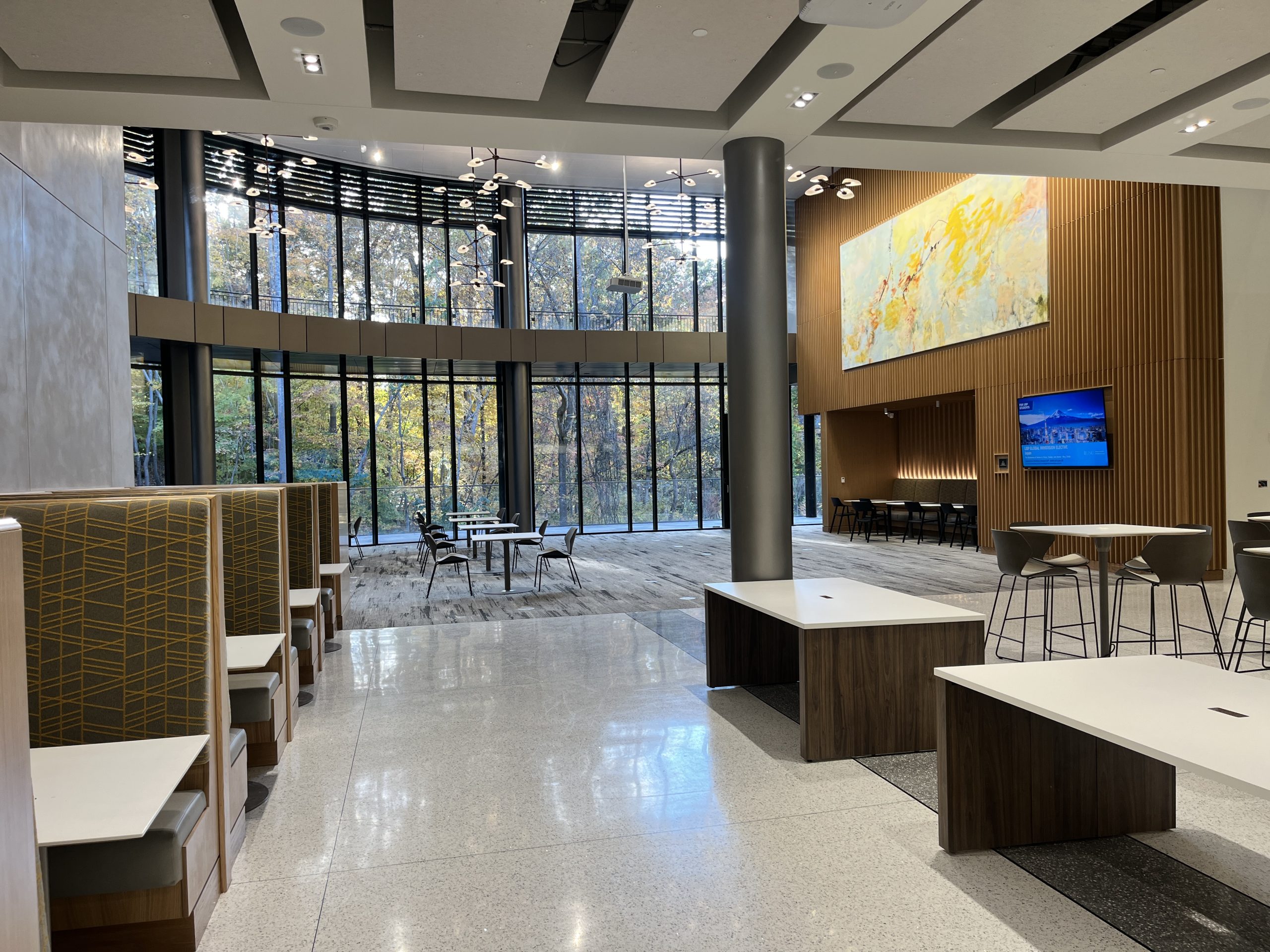 Scheduled to open for the Spring 2026 semester, Steven D. Bell Hall will significantly expand Kenan-Flagler’s academic and community spaces doubling capacity for classrooms, student life, and collaboration. The facility includes technologically advanced classrooms, a 40-seat outdoor tiered teaching space, a four-story atrium surrounded by collaboration, dining, and study areas, meeting and event spaces, dining facilities, and a variety of outdoor event terraces. Together, these spaces support innovative teaching, student engagement, and community interaction within a modern, integrated campus environment.