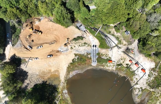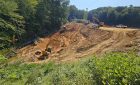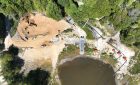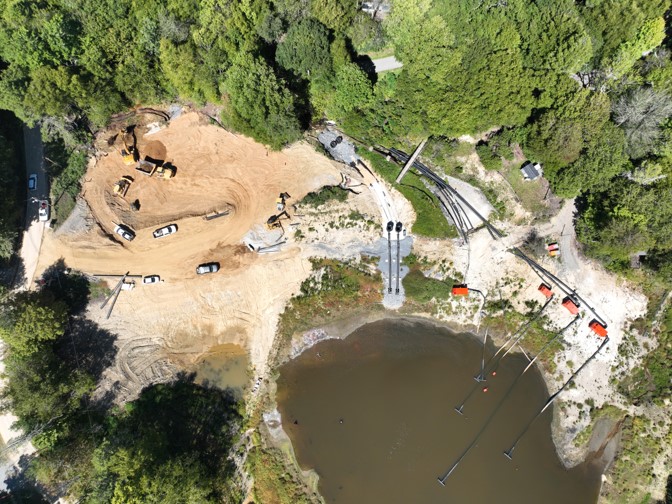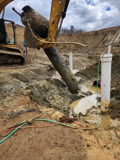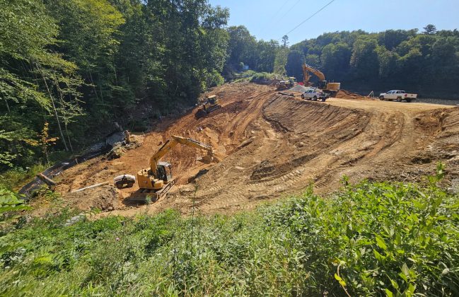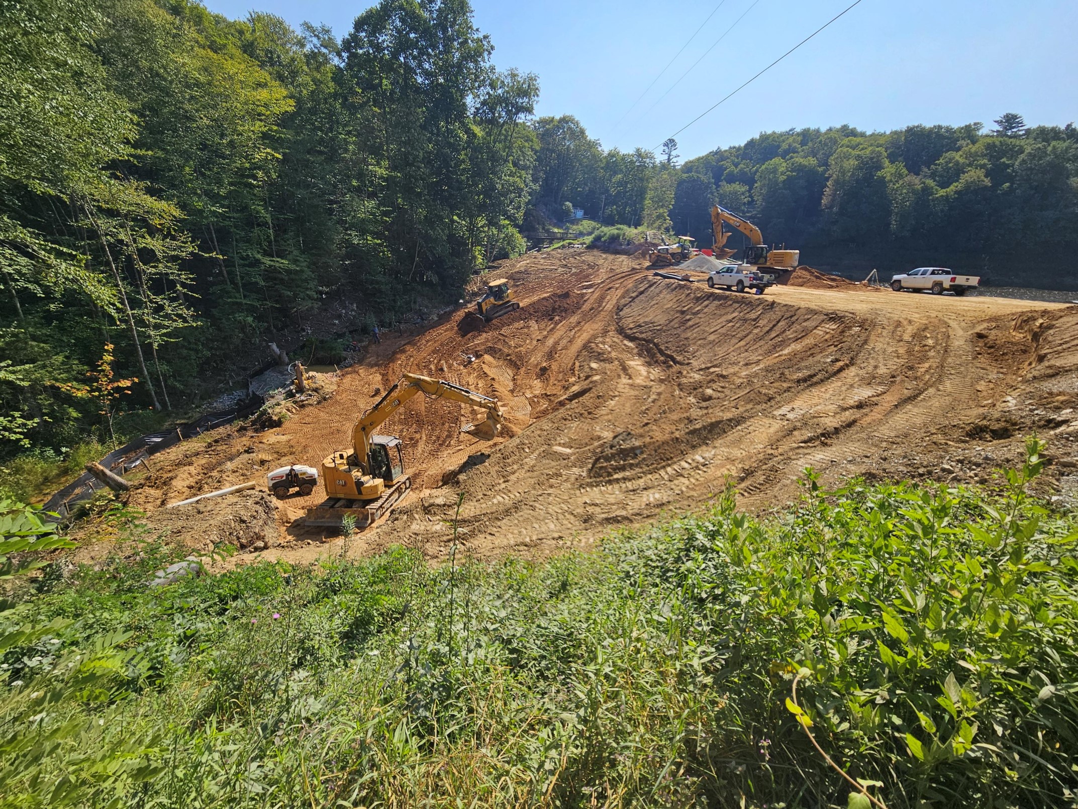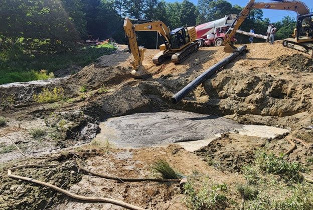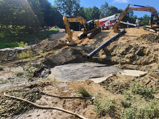 When the embankment filling was approximately 10 feet below the crest, Hurricane Helene deposited approximately 15 inches of rainfall at the site over 2 days. The storm flow was passed using the two new 20-inch siphon drains, pumps, and a temporary spillway notch without overtopping the dam.